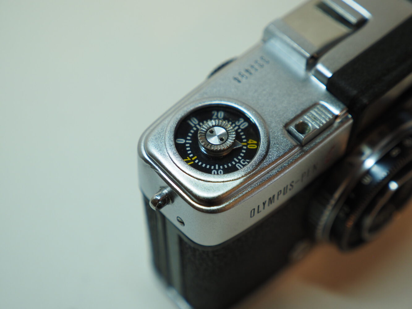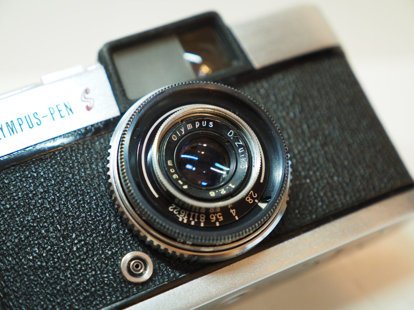 「初代オリンパスペン」はレンズがF3.5のため、もっと明るいレンズが欲しいという要望がありました。これに応えて新しいシャッターを搭載し、Dズイコー30mm F2.8付を実現したのがこのカメラです。